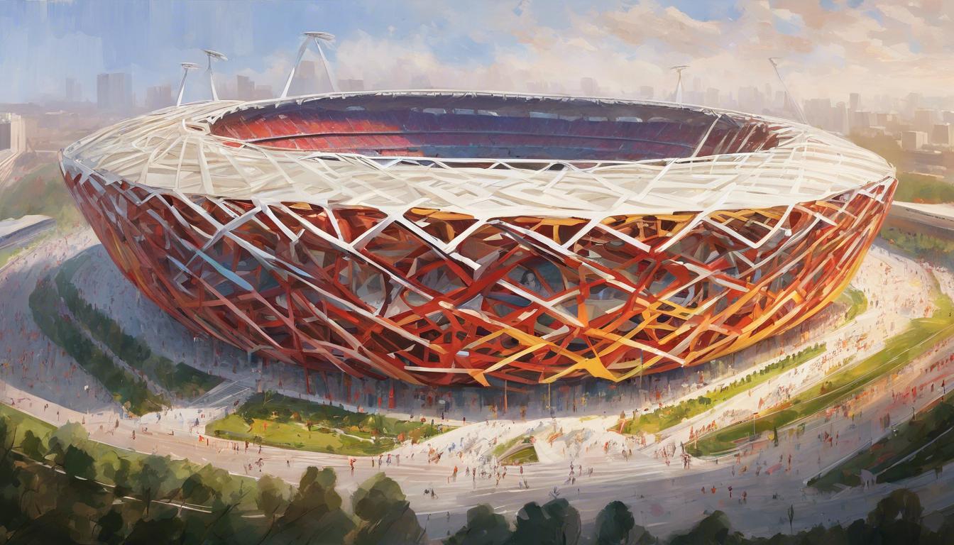 The design of the Bird's Nest is notable for its unique appearance, resembling a woven nest. It features a structural framework made of steel, comprising around 42,000 tons of steel rebar. Interestingly, the stadium's design enhances its structural integrity while minimizing material usage, showcasing a balance between aesthetics and engineering efficiency. The outer shell is composed of an intricate lattice of steel beams, which has led to its nickname, the "Bird's Nest."