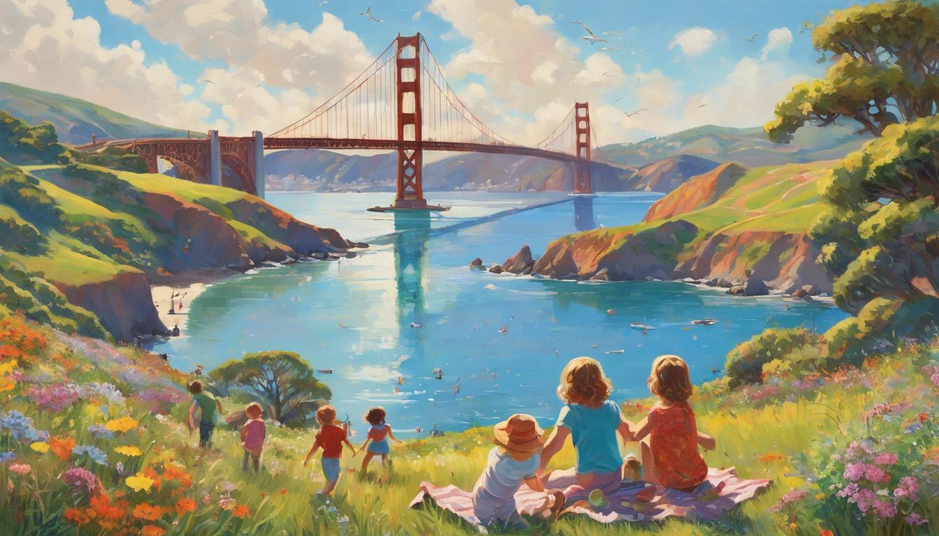 Don't forget to visit the Muir Woods National Monument nearby, where you can see enormous trees called redwoods. They are so tall that they touch the sky! Walking among these giant trees feels like being in a magical forest.