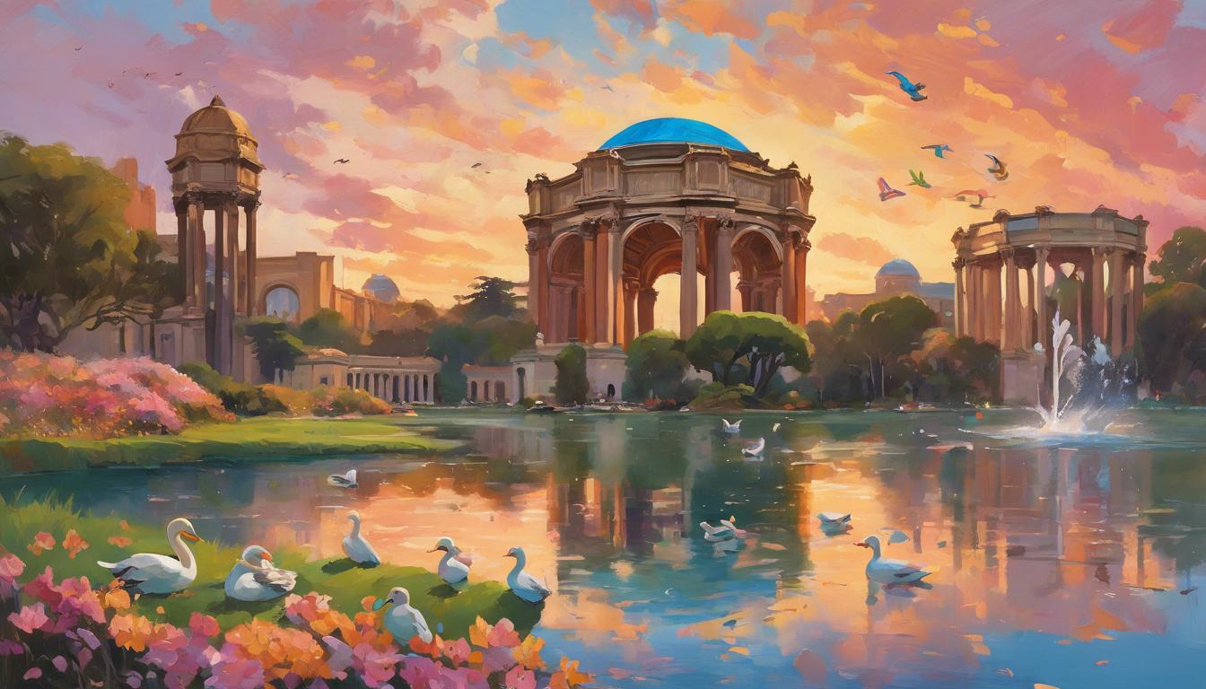 People come from all over the world to see the Palace of Fine Arts. It’s like a treasure in San Francisco. Every corner is filled with beauty, and you can feel the joy in the air. It’s a place that makes everyone smile!