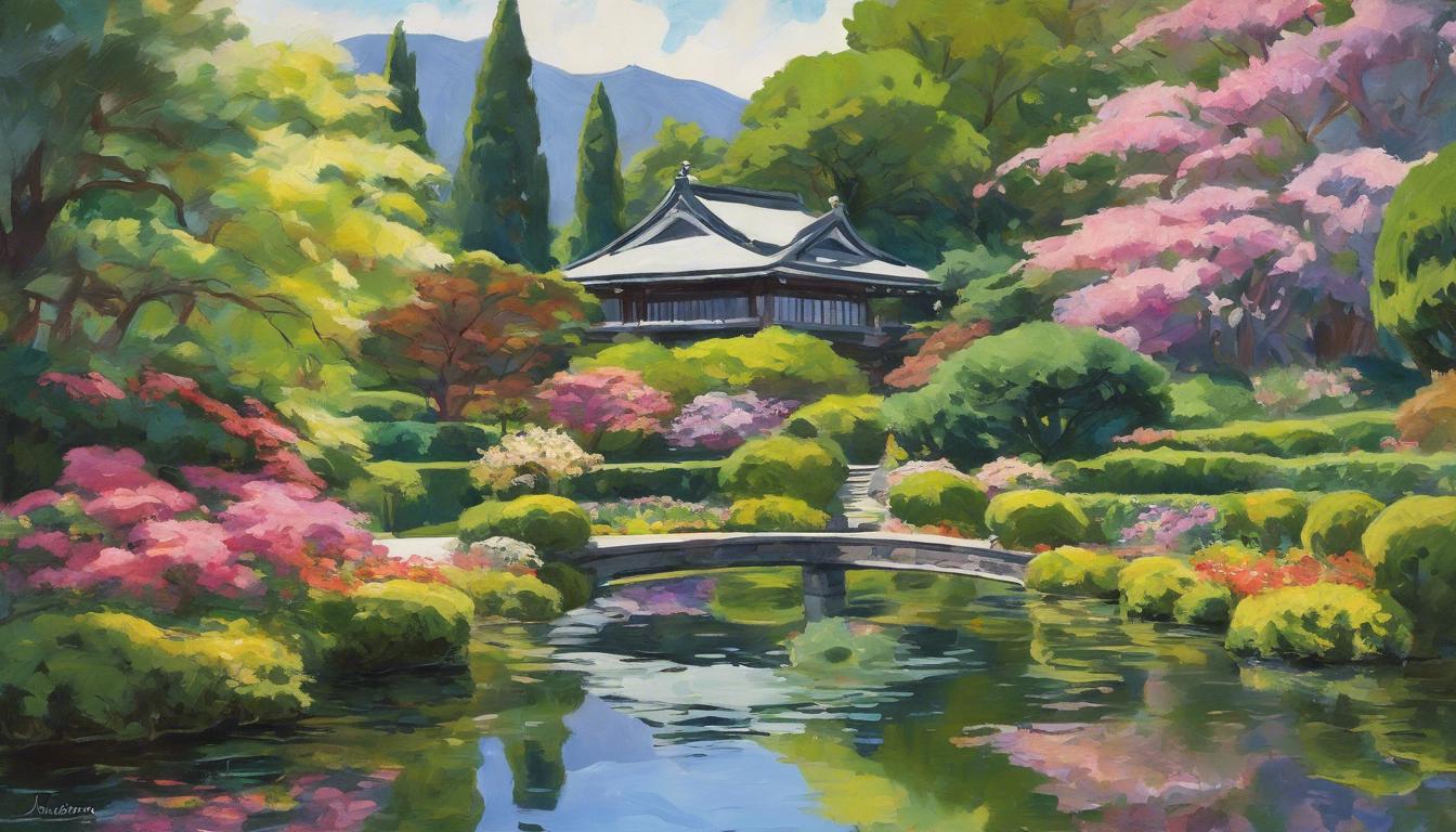 The estate covers 18 acres and features a variety of traditional Japanese garden elements, including koi ponds, a bamboo garden, tea houses, and moon bridges. The garden is divided into several distinct areas, each with its own unique characteristics. The Hill and Pond Garden is perhaps the most iconic, featuring a large pond filled with koi fish, surrounded by meticulously manicured trees and shrubs.