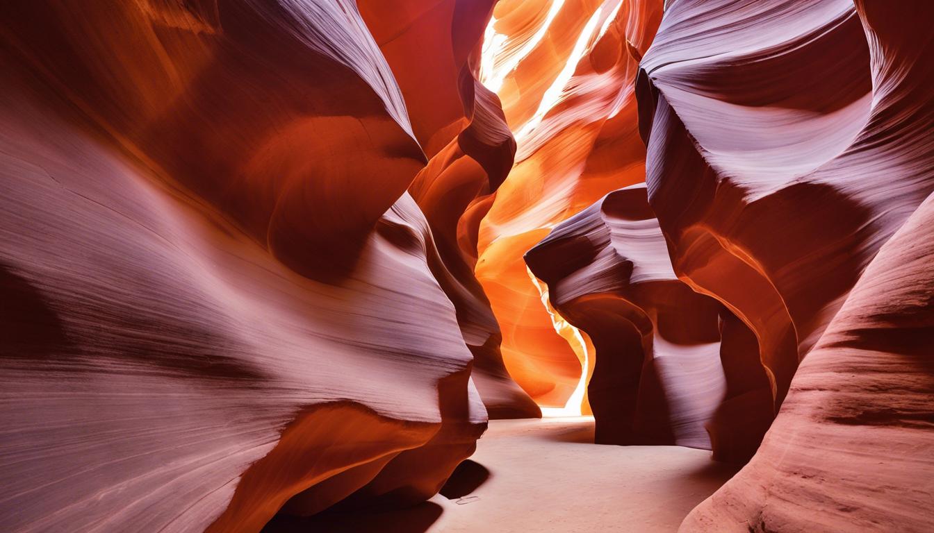 Antelope Canyon, located near 673 Scenic View Rd, Page, Arizona, is a stunning slot canyon renowned for its wave-like structure and vibrant colors. Formed through erosion caused by flash flooding and wind, it is divided into two main sections: Upper Antelope Canyon and Lower Antelope Canyon. The canyon is predominantly made of Navajo sandstone, which has unique properties that allow light to filter through in spectacular ways, creating a surreal atmosphere for visitors and photographers alike.