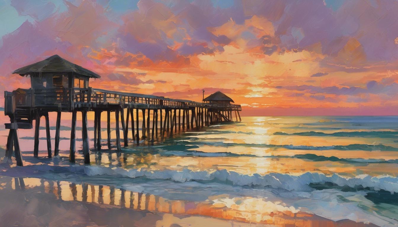 The Naples Pier, located in Naples, Florida, is a historical landmark that stretches into the Gulf of Mexico. Originally built in 1888, it served as a freight and passenger dock. The pier has undergone several renovations and reconstructions due to hurricanes and storms, notably the destruction from Hurricane Wilma in 2005. Today, it stands as a popular spot for fishing, dolphin watching, and enjoying stunning sunsets.
