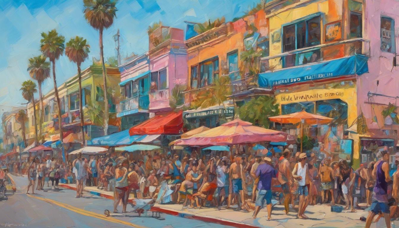 Venice Boardwalk: The Venice Boardwalk is famous for its eclectic mix of street vendors, performers, and artists. It's a sensory overload where you can find everything from tarot card readings to spray paint art.