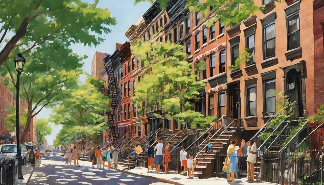 The buildings in this block exhibit classic New York tenement architecture, characterized by their red-brick facades, fire escapes, and modest interiors. These structures have housed generations of New Yorkers, each adding their chapter to the city's story.